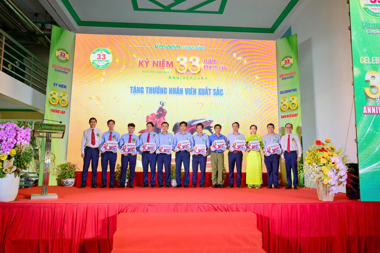 Một trong những khoảnh khắc giàu cảm xúc tại Lễ kỷ niệm 33 năm thành lập của Vemedim là phần tri ân các nhân sự gắn bó lâu năm – những con người thầm lặng góp phần tạo nên nền tảng vững chắc cho thành công của Vemedim hôm nay. Những phần quà và lời tri ân đã thể hiện sự trân trọng sâu sắc của Ban Lãnh đạo đối với sự cống hiến ấy.