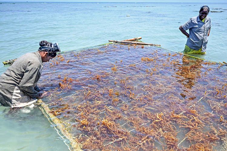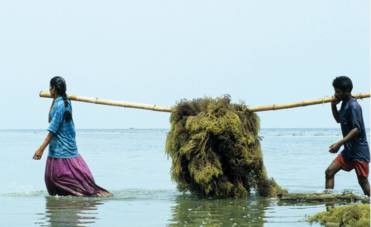 Thu hoạch rong biển ở vịnh Mannar, Tamil Nadu. Ảnh: Alamy