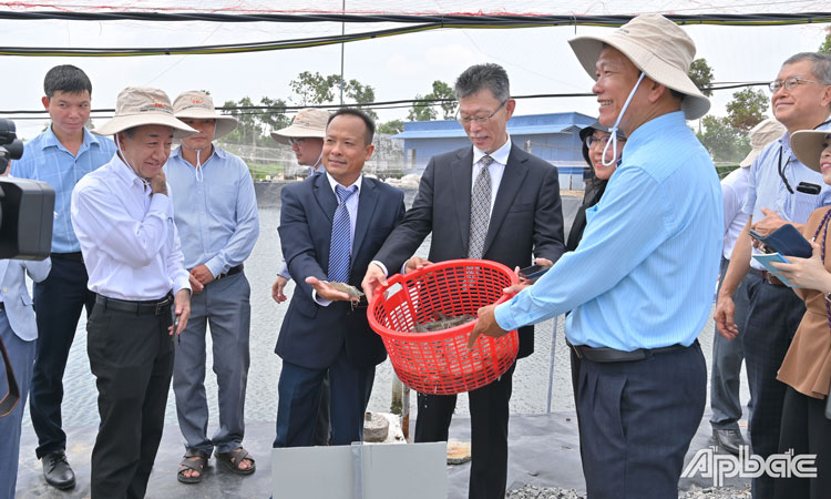 Ông Sugawara Toshihide, Phó Giám đốc Yuko Keiso thông tin, mô hình là một nghiên cứu trình diễn hệ thống nuôi tôm ứng dụng công nghệ điện pin nhiên liệu ôxit rắn (SOFC) chạy bằng khí sinh học từ phụ phẩm nông nghiệp kết hợp hệ thống IOT giám sát toàn diện.