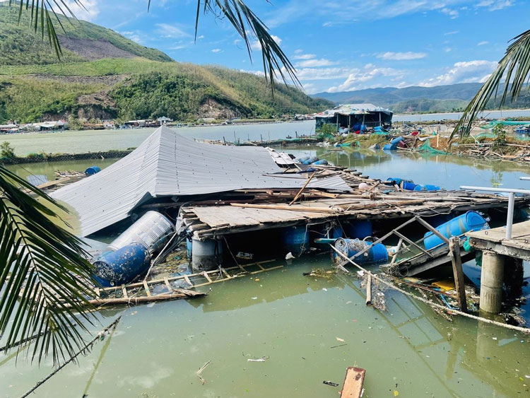Tại vịnh Xuân Đài – một trong những vùng nuôi tôm hùm lồng bè trọng điểm, bão số 13 đã làm khoảng 95% số lồng nuôi bị hư hại, hơn 20 triệu con tôm bị chết. Mưa lớn kéo dài khiến độ mặn môi trường nước giảm đột ngột, vượt ngưỡng chịu đựng của vật nuôi, trong khi sự biến động môi trường tiếp tục kéo dài nhiều tuần sau bão. Không chỉ thiệt hại về kinh tế, hậu quả thiên tai còn đẩy nhiều hộ nuôi vào vòng xoáy thiếu vốn, nợ vay chồng chất. Với các đối tượng nuôi có chu kỳ dài như tôm hùm, cá biển giá trị cao, việc phục hồi không thể diễn ra trong “một sớm một chiều”.