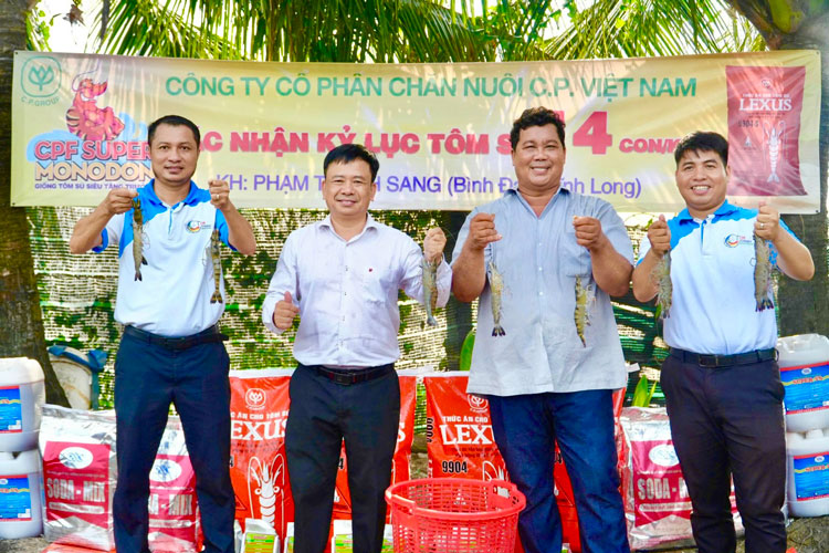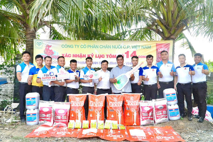 C.P. Việt Nam xác nhận kỷ lục tôm sú 14 con/kg tại khu nuôi CPF-COMBINE của anh Sang