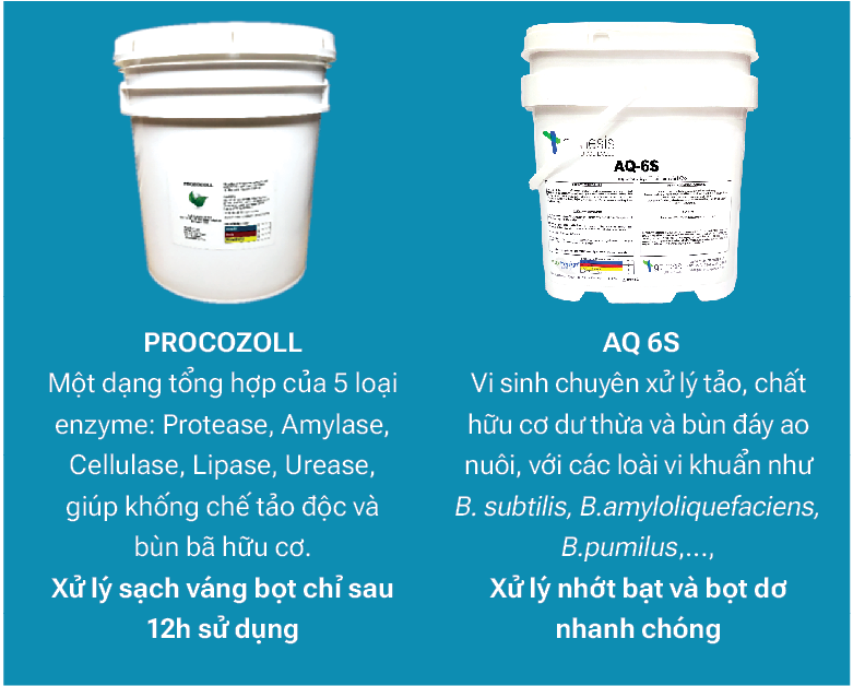 Hiện tượng váng bọt ảnh hưởng rất lớn đến vụ nuôi, do đó, cần xử lý kịp thời và kiểm soát tốt các yếu tố gây ra hiện tượng này. Chế phẩm Enzyme đậm đặc với hoạt lực mạnh sẽ xử lý váng bọt cũng như chất hữu cơ dư thừa chỉ sau 12h sử dụng, việc bổ sung chế phẩm vi sinh sau đó sẽ duy trì hiệu quả kiểm soát chất lượng nước trong suốt quá trình nuôi, giúp tiết kiệm thời gian, chi phí và nâng cao năng suất.